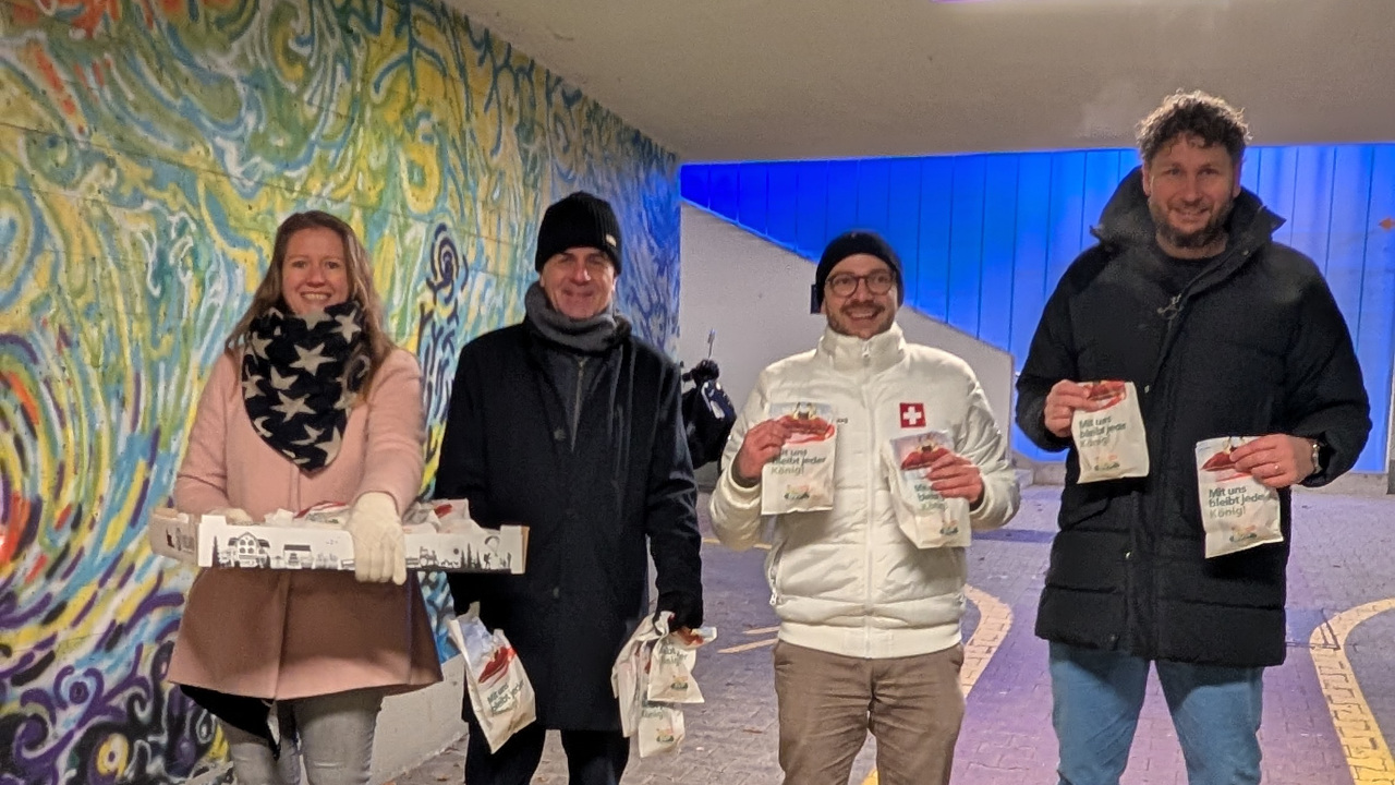 Ganz nach dem Motto «Mit uns bleibt jeder König» wurden die Passantinnen und Passanten mit Dreikönigskuchen überrascht. Die Aktion fand grossen Anklang: Innerhalb von rund eineinhalb Stunden konnten trotz der Kälte rund 250 Dreikönigskuchen verteilt werden. Die persönliche Begegnung mit der Bevölkerung bot einen idealen Start in den Wahlkampf und unterstrich die Nähe der SVP Herrliberg zu den Anliegen der Bürgerinnen und Bürger.