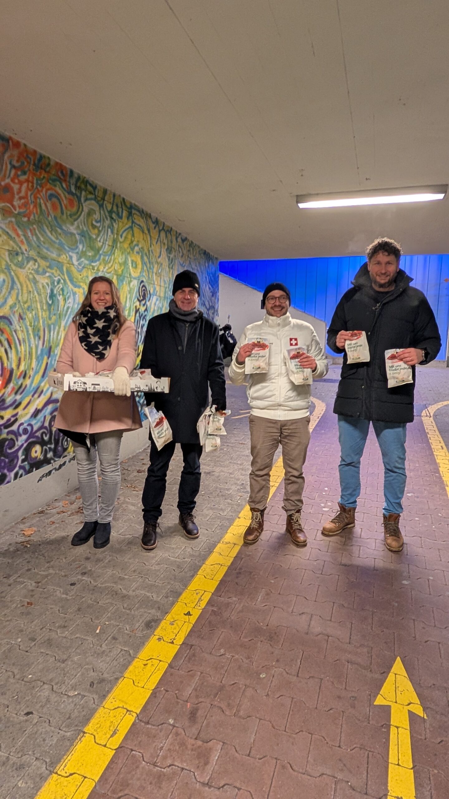 Ganz nach dem Motto «Mit uns bleibt jeder König» wurden die Passantinnen und Passanten mit Dreikönigskuchen überrascht. Die Aktion fand grossen Anklang: Innerhalb von rund eineinhalb Stunden konnten trotz der Kälte rund 250 Dreikönigskuchen verteilt werden. Die persönliche Begegnung mit der Bevölkerung bot einen idealen Start in den Wahlkampf und unterstrich die Nähe der SVP Herrliberg zu den Anliegen der Bürgerinnen und Bürger.